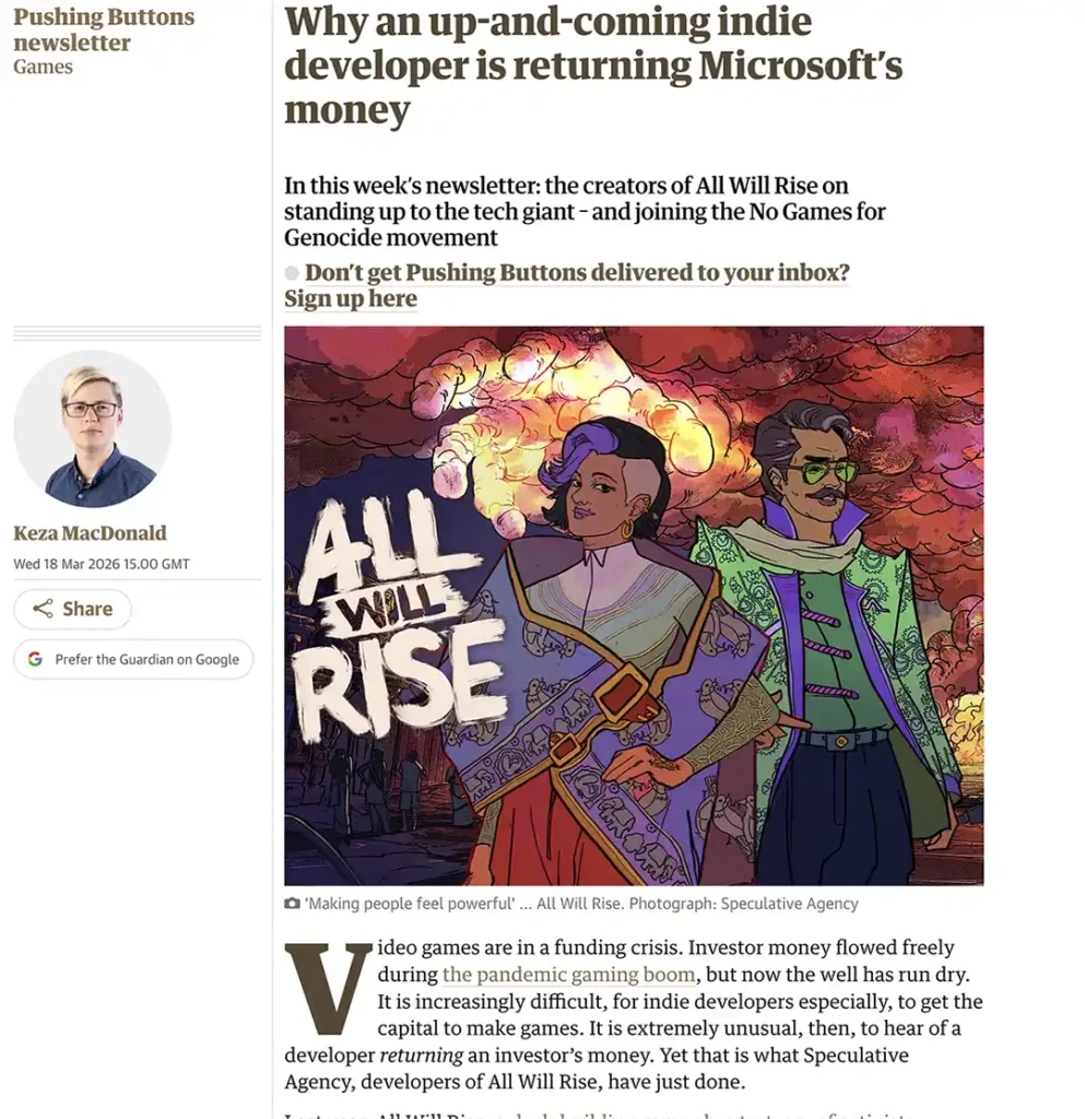 The Speculative Agency has successfully closed the kickstarter for our game, All Will Rise.