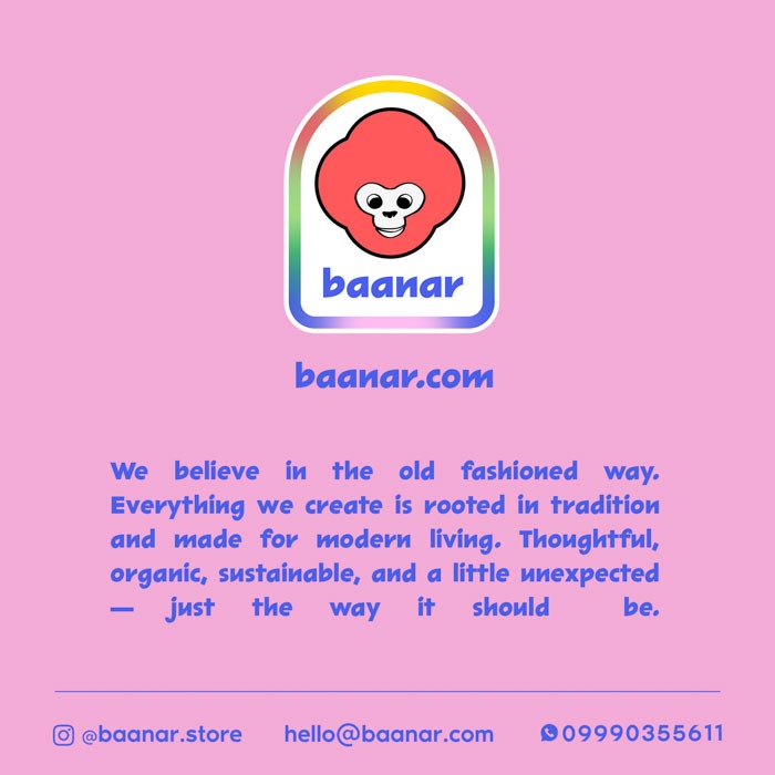 In a world that celebrates speed, Baanar stands for the opposite. Created in small batches with intentional slowness, tradition, and the belief that everyday objects should be meaningful. Each product is a story you can cook with, wear, display or gift. We are not just a shop. We are a promise to keep India’s slow traditions alive, one product at a time.